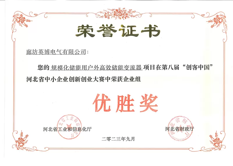 荣获十大储能双向变流器供应商奖、2019年中国电业工业储能变流器创新产品奖、荣获“专精特新”示范企业