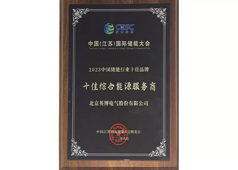 荣获中国储能行业十佳品牌 “十佳综合能源服务商”
